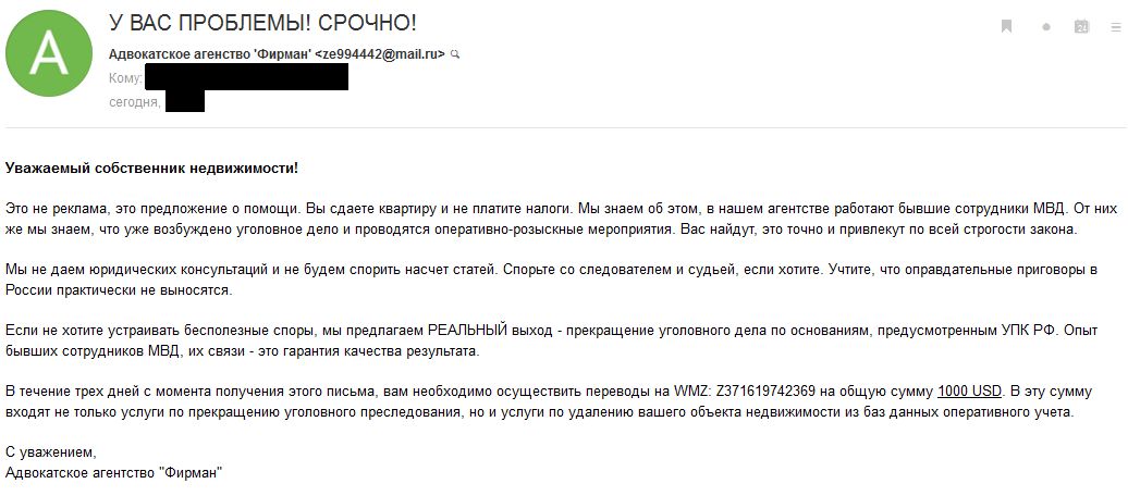 Вчера обнаружилась любопытная тема: на авито в разделе продажи недвижимости было выложено объявление о продаже квартиры в центре города с хорошим ремонтом за бесценок. Объявление с кучей ошибок и указанием на то, что звонить не надо, только писать на e-mail. Поняв, что дело пахнет разводом, была поставлена цель потроллить неизвестных умников. В ответ на предложение купить такую квартиру получил такой ответ: