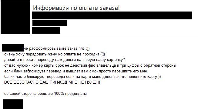 Сделал неплохой по сумме заказ и не оплатил его. Правда, сообщил, что оплатил. На замечание отреагировал спокойно, сказал, что сбой в платежной системе и он послал деньги еще раз.
