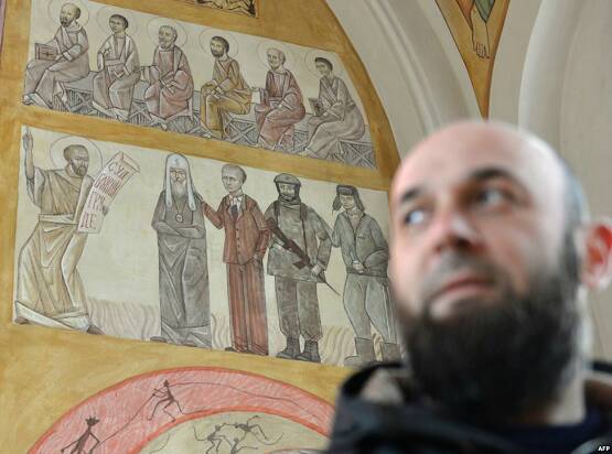 Еретическая фреска "Cошествие во ад Путина и его приспешников". Боятся господа еретики русского духа.