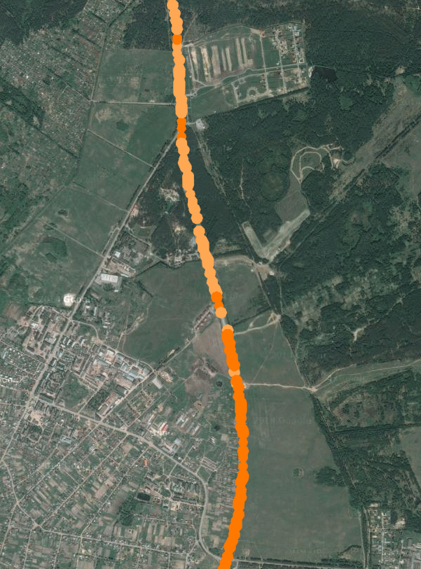 Я не знаю, что означают эти зелёные кляксочки, но когда я каждое утро еду на работу, 6 раз из 10 говорю по телефону и в этом месте связь разрывается. Меня уже переспрашивают - Поляны проезжаешь?