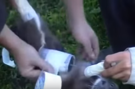 Несколько часов назад в сети появилось видео как группа лиц связала кота, далее к животному скотчем примотали самодельную взрывчатку.