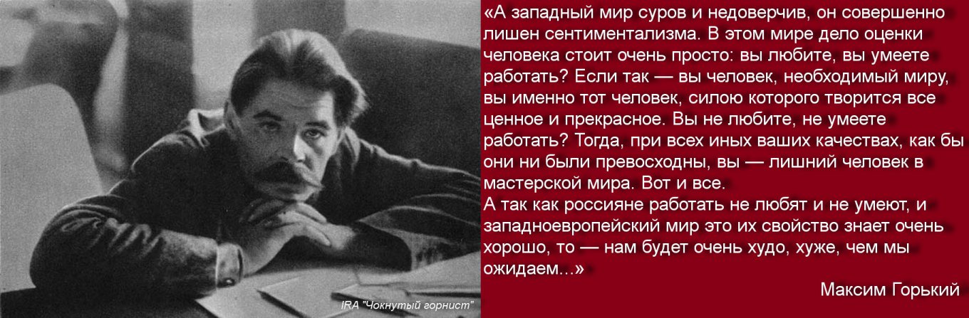 А так как россияне работать не любят и не умеют, и западноевропейский мир это их свойство знает очень хорошо, то — нам будет очень худо, хуже, чем мы ожидаем...»