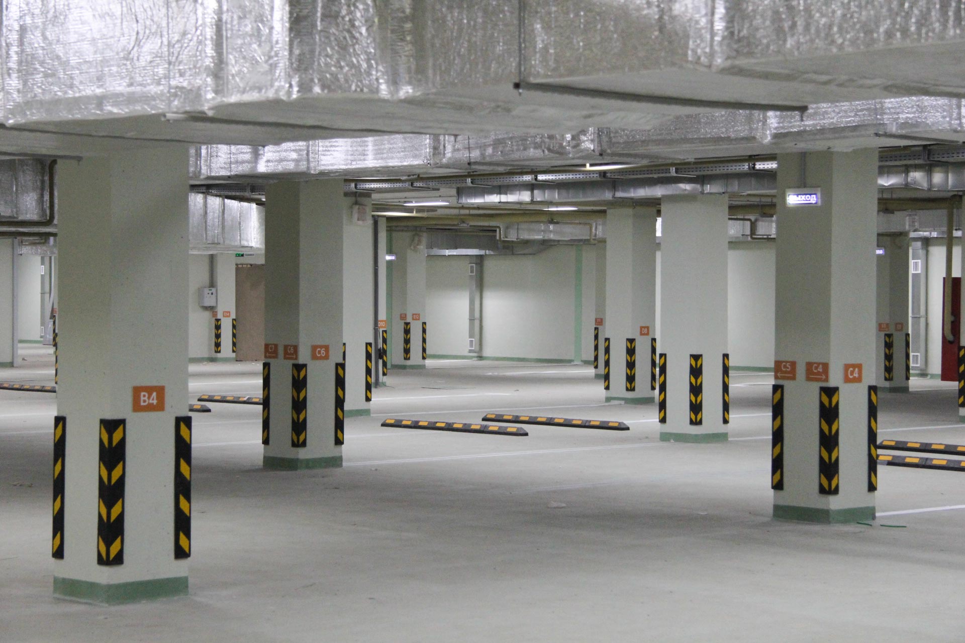 Завершена опрессовка системы пожаротушения подземного паркинга, проведены испытания систем пожарной сигнализации и дымоудаления. В подземном паркинге смонтированы навигационные таблички, наносится разметка парковочных мест.