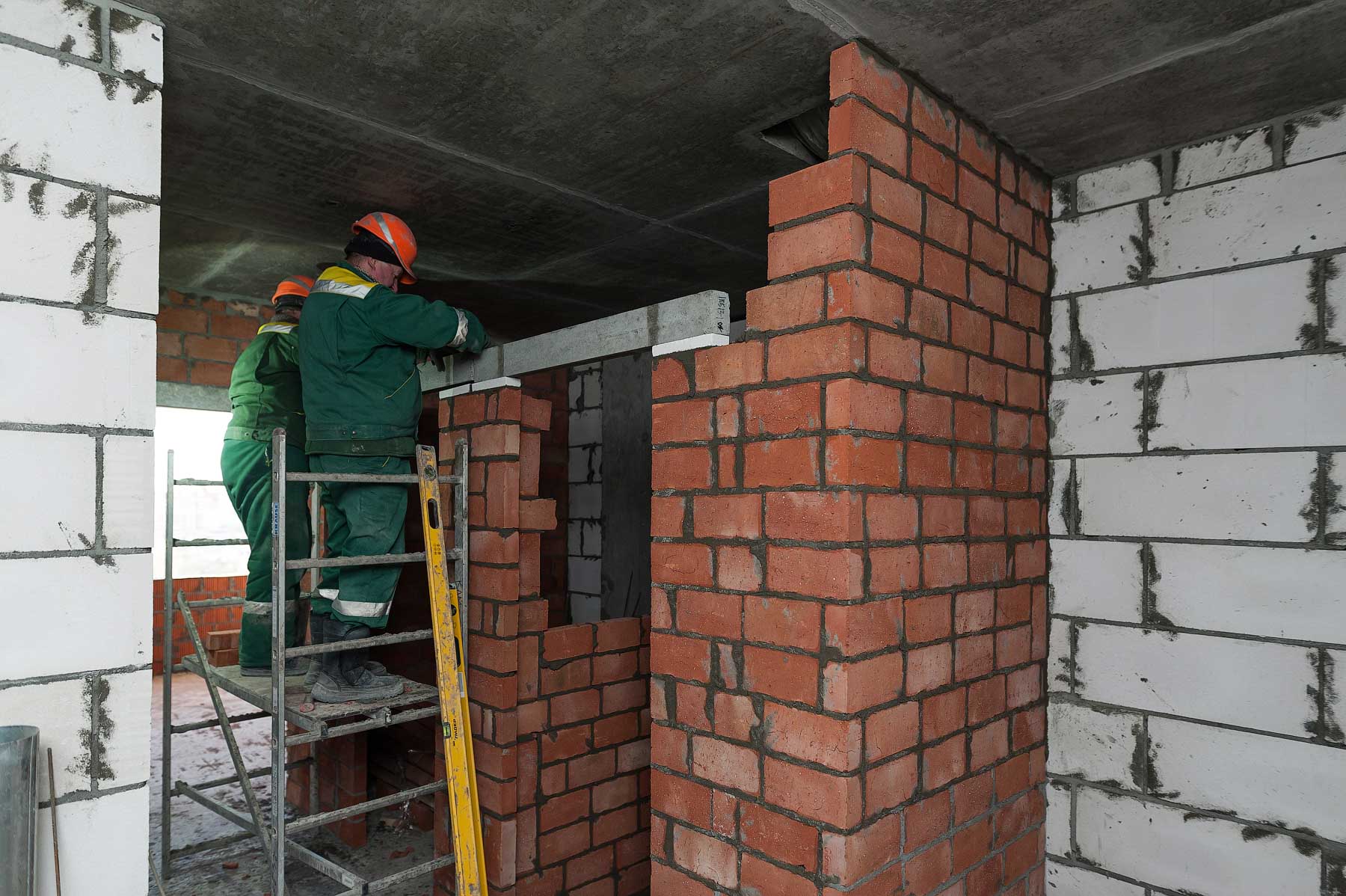 - кладка наружных стен и перегородок на 2-7 этажах 19-этажной секции, на 2-6 этажах 24-этажной секции;
