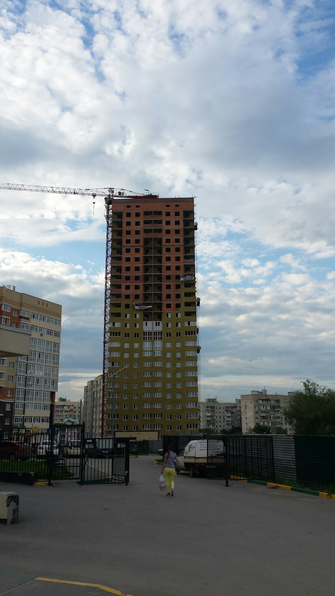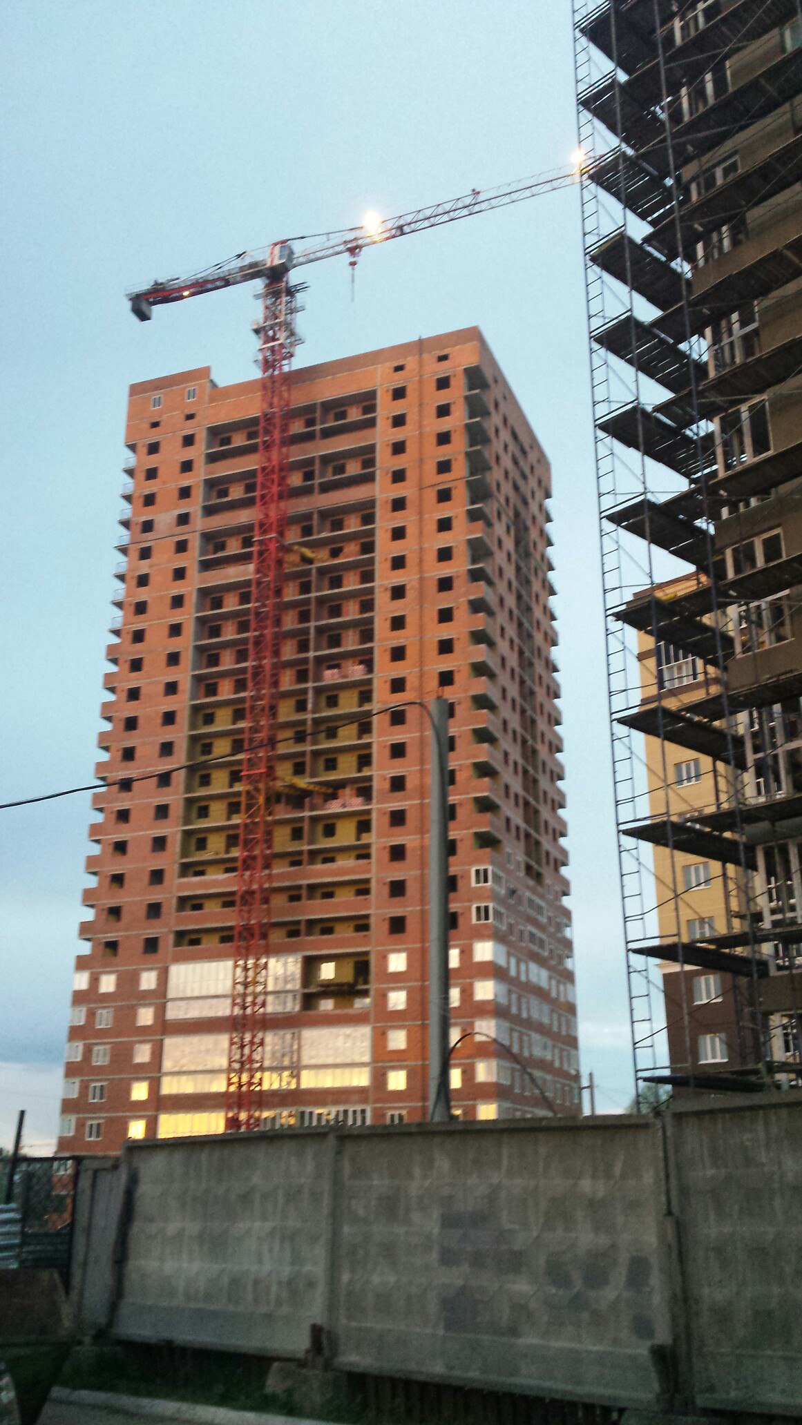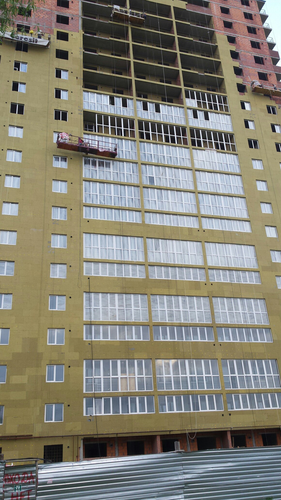 Всем привет, сегодня вечером заезжал посмотреть как дела на стройке, на люльках уже начинают работать (утеплять фасад).