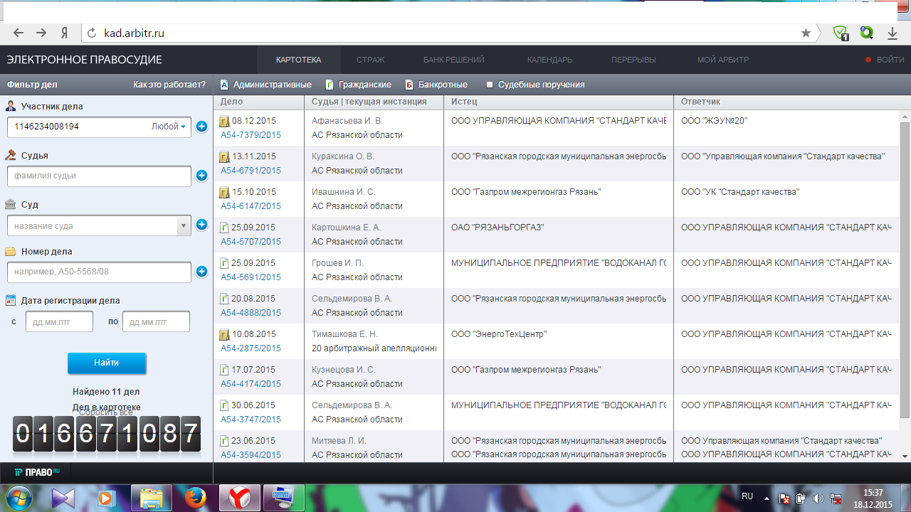 http://kad.arbitr.ru/ Арбитражный суд. ОГРН ООО "УК СТАНДАРТ КАЧЕСТВА" 1146234008194