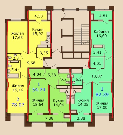А вот план 2-го этажа 2-й секции. Красным в Paint'е помечены те стены, которые явно будут из железобетона.