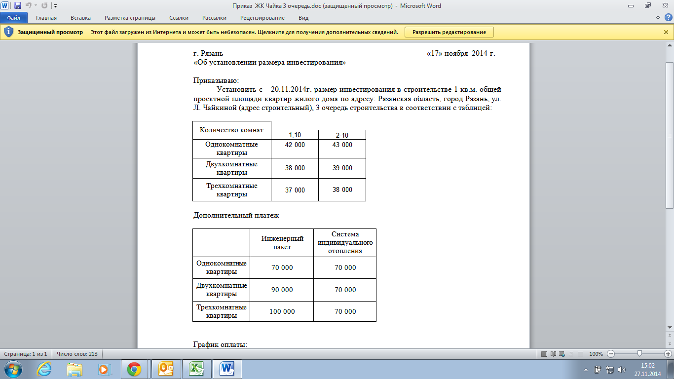 Когда мы составляли договор 12 ноября, планировал изменить некоторые условия по договору и меня предупредили, что цена будет меняться с четверга. А потом Мне на почту прислали приказ от «17» ноября 2014 г. Правда печатей и подписей нет в этом приказе, только текст и таблица с ценами. Могу скинуть, то что мне прислали