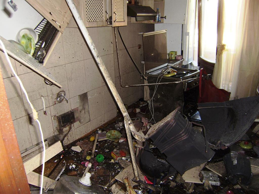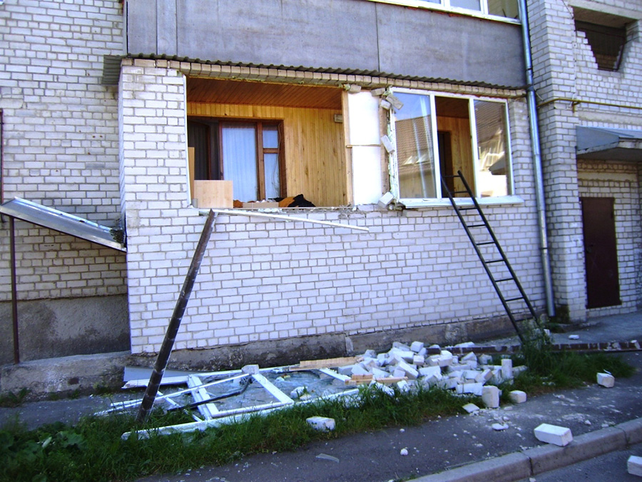 Взрывная волна, каким то чудным образом пошла не по квартире и соседним квартирам, а вышла на балкон, вследствие чего взрывом вышибло окна балкона.