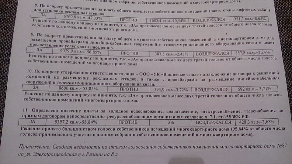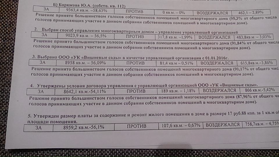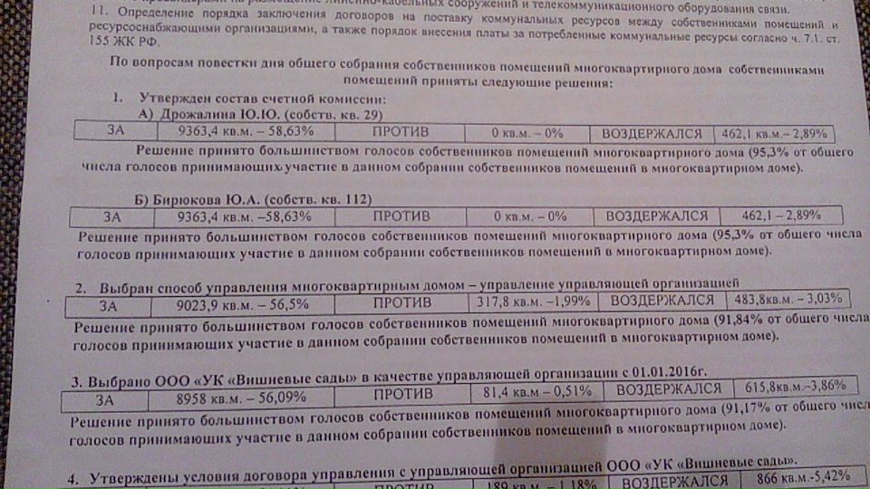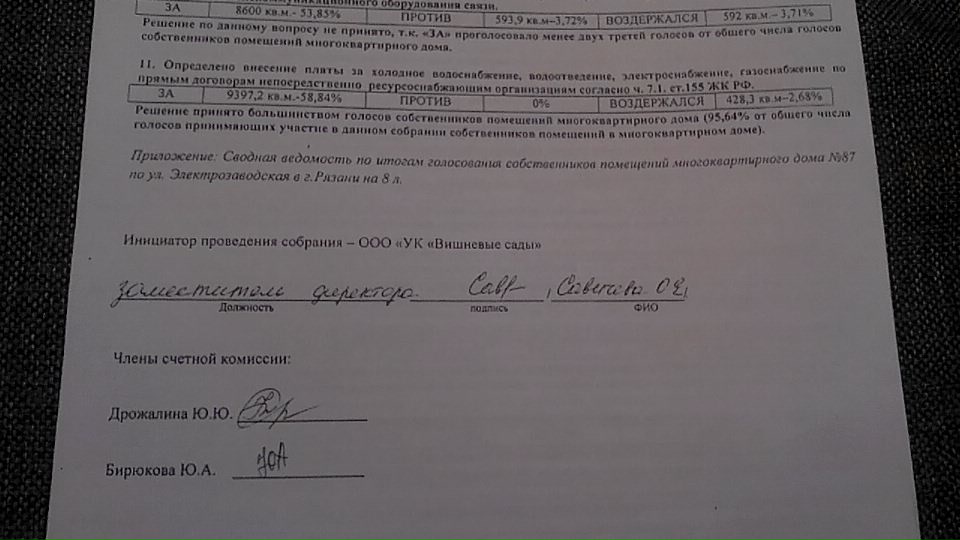 Да вот эта счетная комиссия и посчитала 56%. И якобы мы так же выбрали этих представителей от нашего дома Дрожалина Ю.Ю. (кв.29) 58%, и Бирюкова Ю.А. (кв.112) 58%