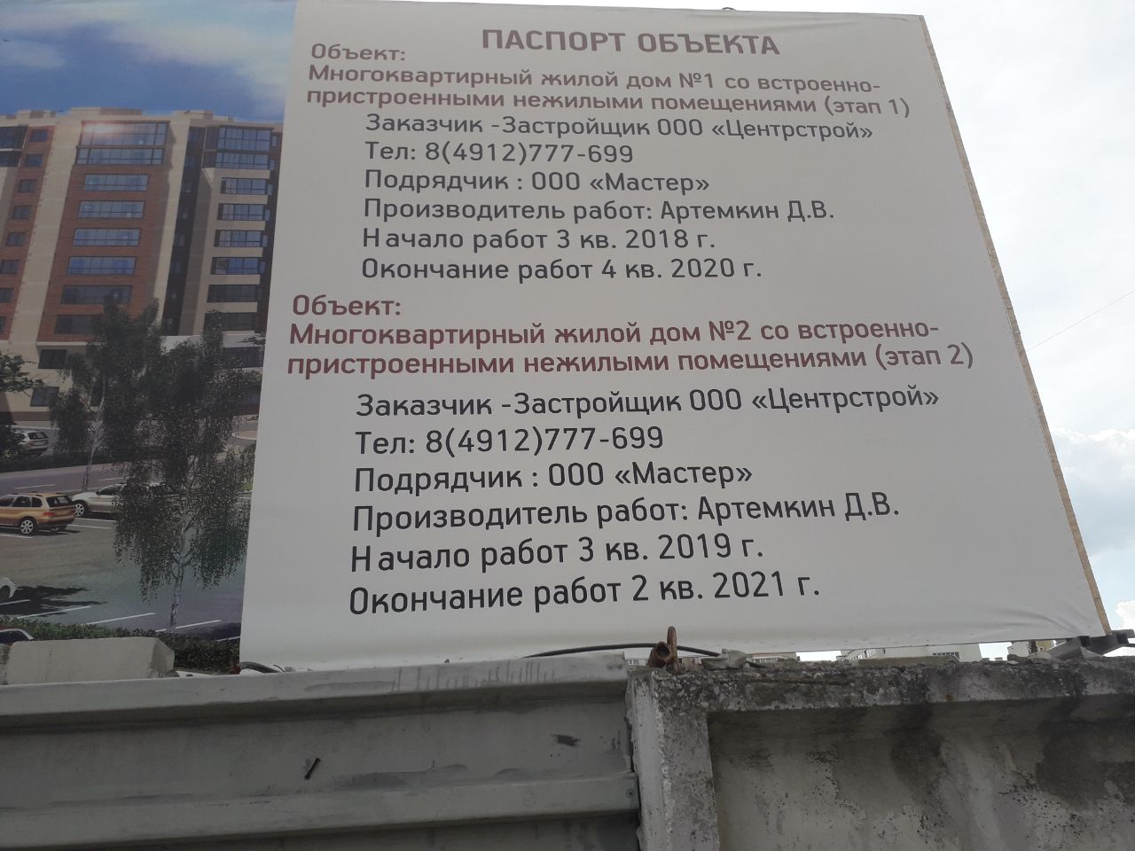 Появился паспорт объекта строительства.