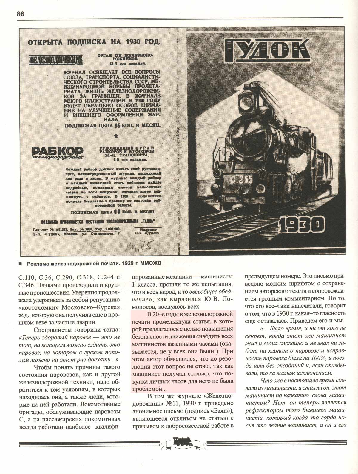 Ну и связь между часами, паровозами и руководителями (Никольский А., «Паровозы. Серия С», М. Виктория, 1997 г., 176 с., стр. 86–87)