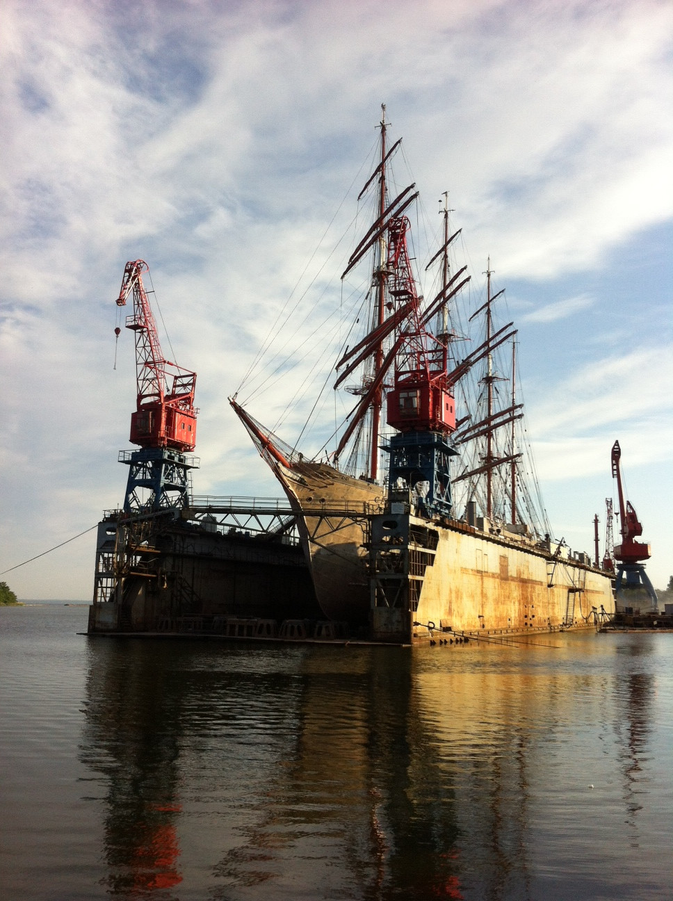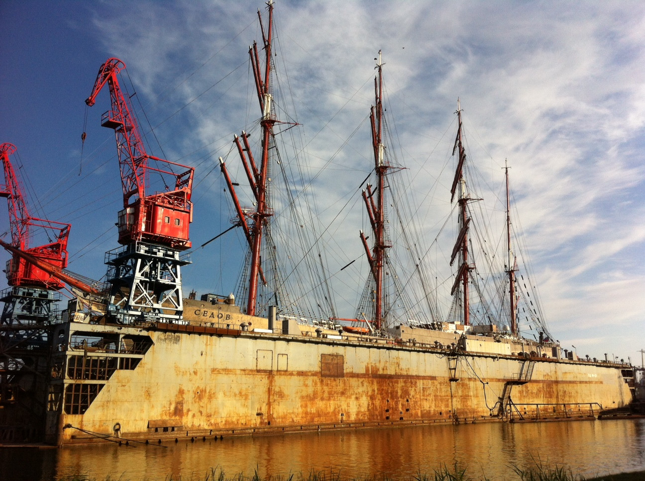 В портовом городе Светлый Калининградской области продолжаются работы по технической подготовке учебного парусника "Седов" к предстоящей навигации...