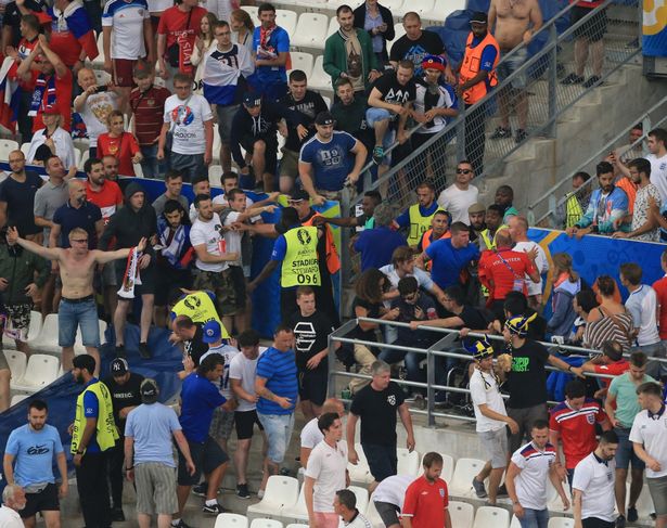 В то же время двух россиян полиция задержала, но не за драки, а за проникновение на футбольное поле во время матча. Всего в Марселе, по подсчетам прокуратуры, было около 12 тысяч российских болельщиков.