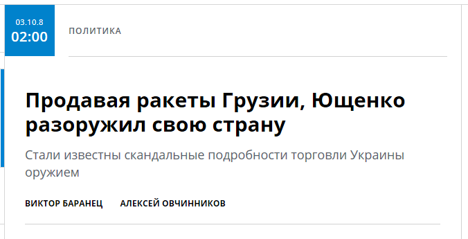 Источник: «Комсомольская Правда», № от 03 окт. 2008 г.Продавая ракеты Грузии, Ющенко разоружил свою страну