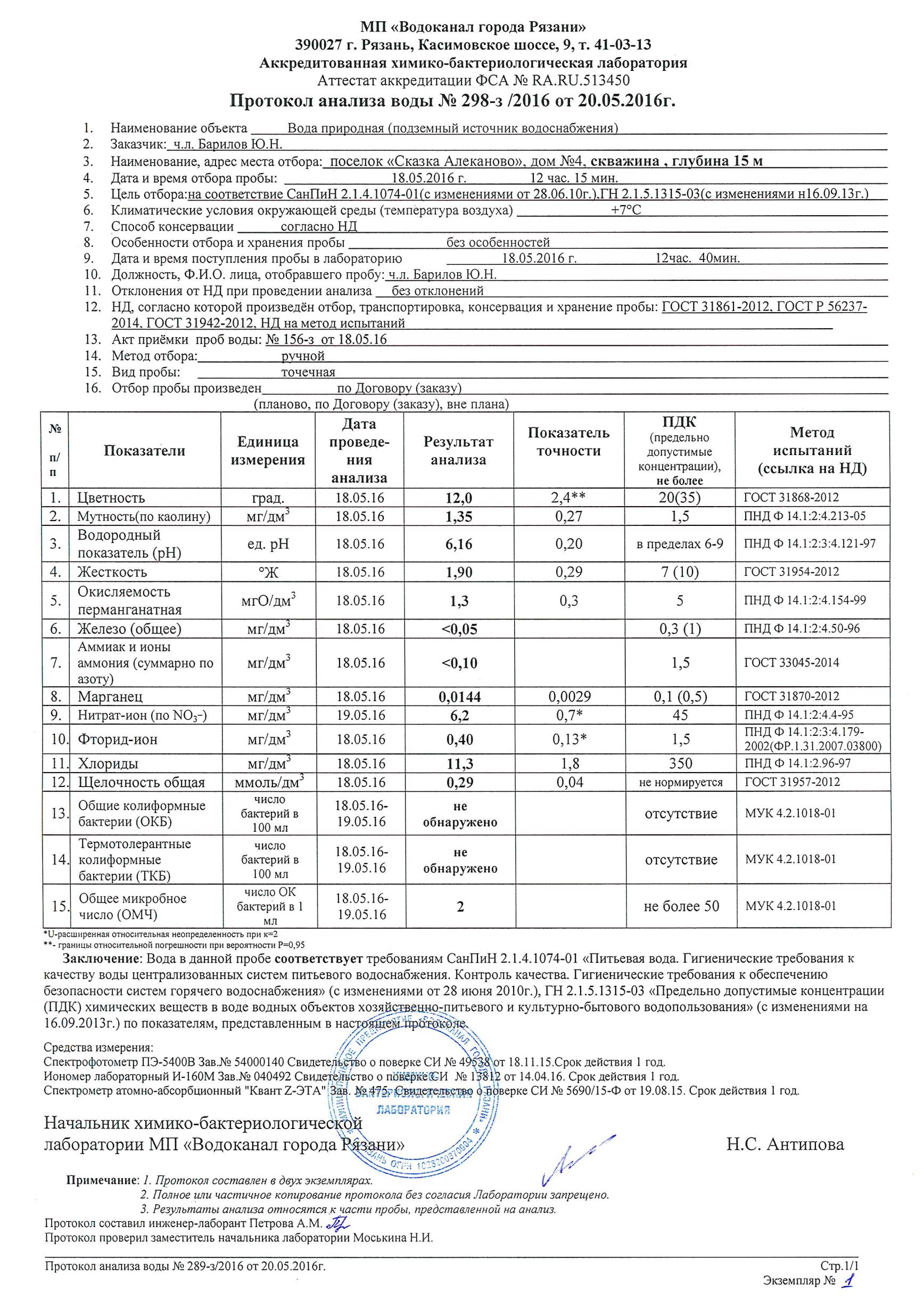 Решила купить там участок и сделала анализ на сколько хорошая вода, очень принципиальный момент для меня. Менеджеры утверждают, что вода хорошая, но им на слово не поверила. И вы знаете, была приятно удивлена результатами с мужем. Прикладываю результаты, посмотрите кому интересно.