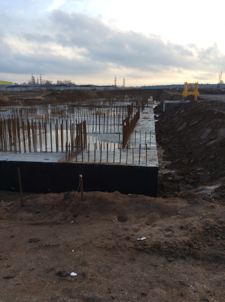 Сделан фундамент, виднеется арматура. На одном из фото что-то похожее на разрыв межу секциями