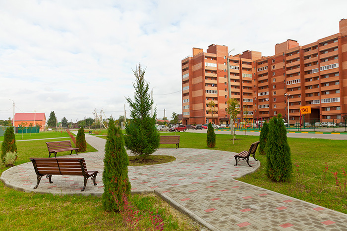 Внутри комплексной застройки возводится детский сад, предусмотрены парковая зона, спортивные и детские площадки, зона Wi-Fi.