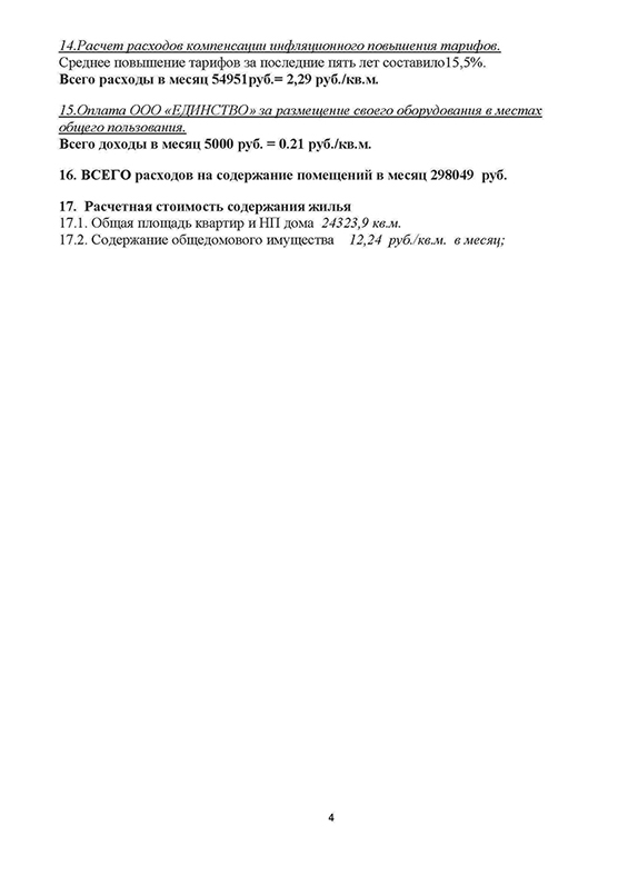 Оплачивать аварийную работу сантехнику лучше за фактически проделанную работу: это в разы дешевле. Одна прочистка канализации стоит 4000 руб. и каждый месяц она засоряться не будет. Установленный тариф (Постановление Администрации г.Рязани № 3448 от 29 июля 2015 г.) 0,378 руб./кв.м. х 24323,9 кв.м. дома = 9195 руб./месяц - этой суммы гарантированно хватит на экстренный случай. Оставшаяся сумма может собираться и быть использована для гидродинамической прочистки лежаков от засора раствора строительными смесями: 270 руб./метр погонный. Такую прочистку достаточно делать 2 раза в год. Если каждый месяц вызывать сантехника и раз в полгода промывать лежак этих денег хватит на 115 метров лежака: (9195 руб. х 6 месяцев - 4000 руб.): 270 руб./п.м. = 115 п.м. Если сантехник будет чистить один раз в пол-года и промывать канализацию, то хватит на (9195 руб.-4000 руб. + 9195 руб. х 5 мес.):270 руб/п.м. = 189 п.м. лежаков. На самом деле, фактически, засоры случаются еще реже и не являются трудноразрешимым и высокозатратным случаем.