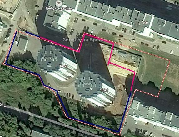 Насчет забора. Он в любом случае пойдет по границе кадастровых участков, думаю, никто не разрешит пустить его иначе. То есть по синей линии, как на снимке у Alexej_B. Загородить ВСЮ парковку тоже не получится, так как там проезд к магазинам. А жаль, это был бы идеальный вариант.