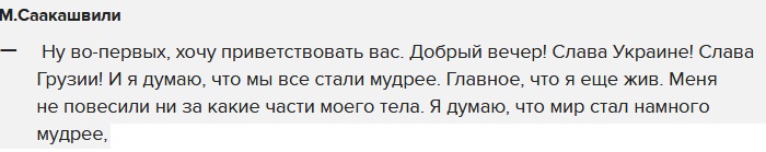 Сейчас вы все ждёте, что закричу — я Саакашвили маму е…, да? — Вот вам Саакашвили, вот и его министры, вот вы, вот я и вот грузинская армия. Ругайте кто хотите.